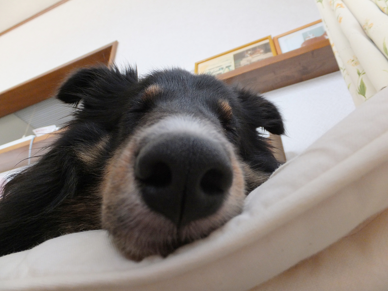 例えば、ココちゃんが自分のお茶碗にボールを偶然入れたり、伏せの時に腕がクロスしていたり、私にもたれかかって寝てくれたりした時などです。